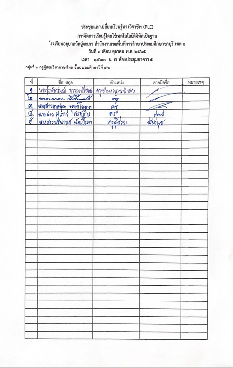ลงชื่อการประชุม PLC